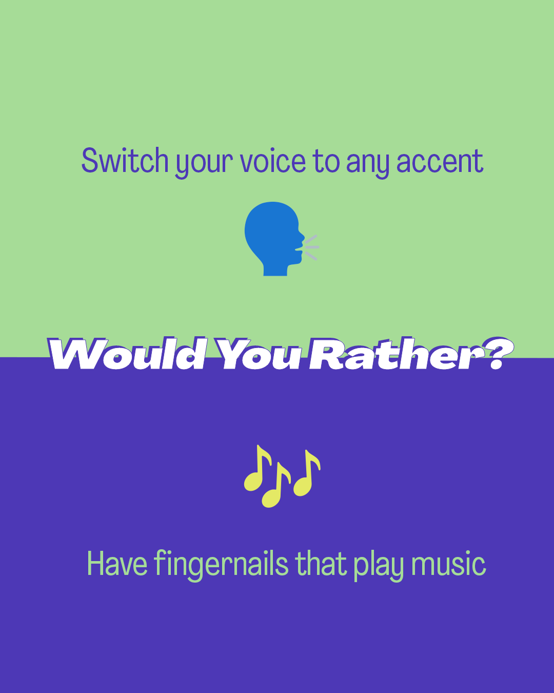 Would You Rather: Accent or Musical Fingernails
